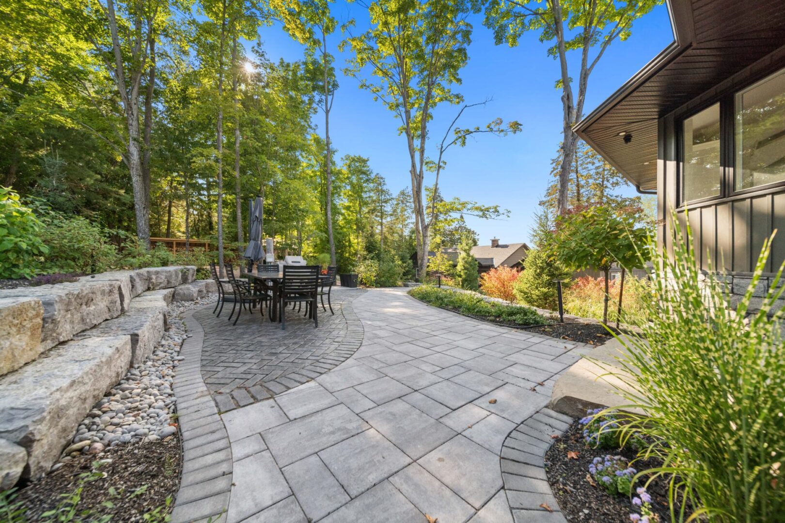 Enjoy the beauty of a custom-designed stone walkway that compliments the natural landscape and style of your property.